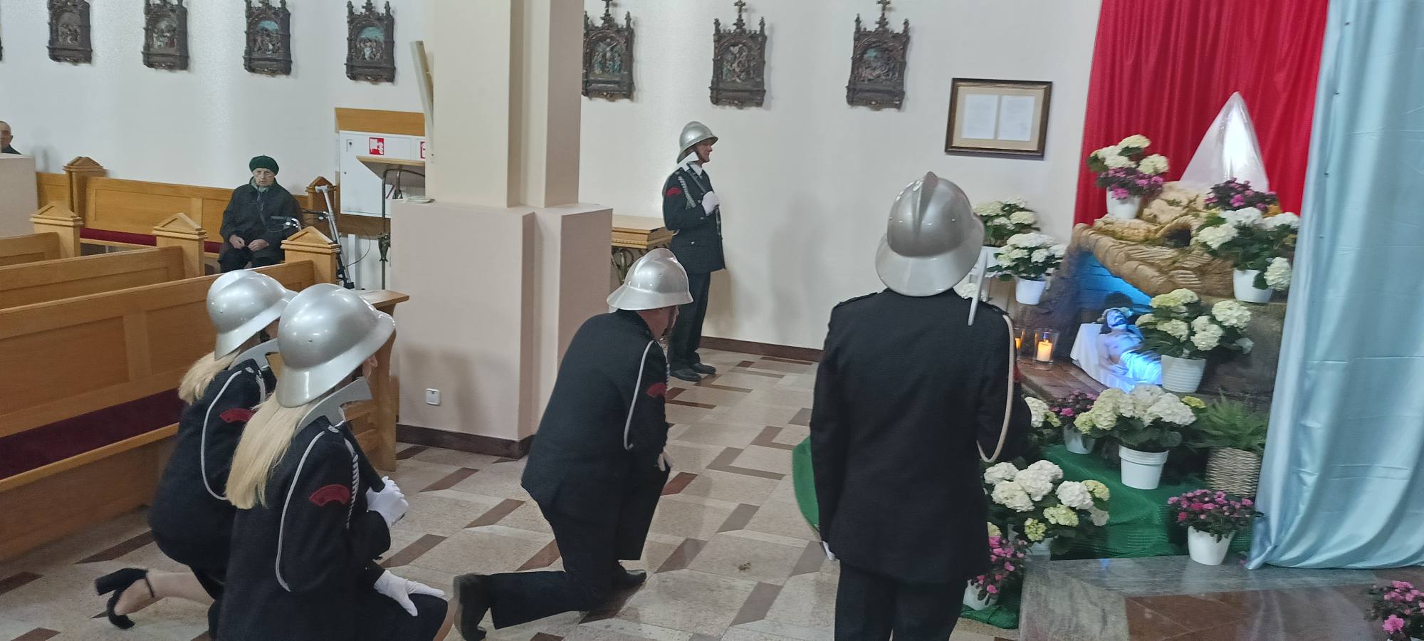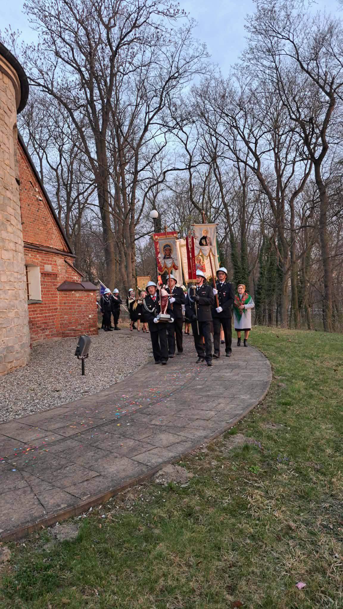 5 kwietnia 2026 r. o godzinie 6:00 druhny, druhowie oraz Poczet Sztandarowy OSP Trzęśniew uczestniczyli w uroczystej Mszy Rezurekcyjnej oraz procesji wielkanocnej w Parafii św. Andrzeja Apostoła w Kościelcu, wspólnie z druhami z Parafii Kościelec.