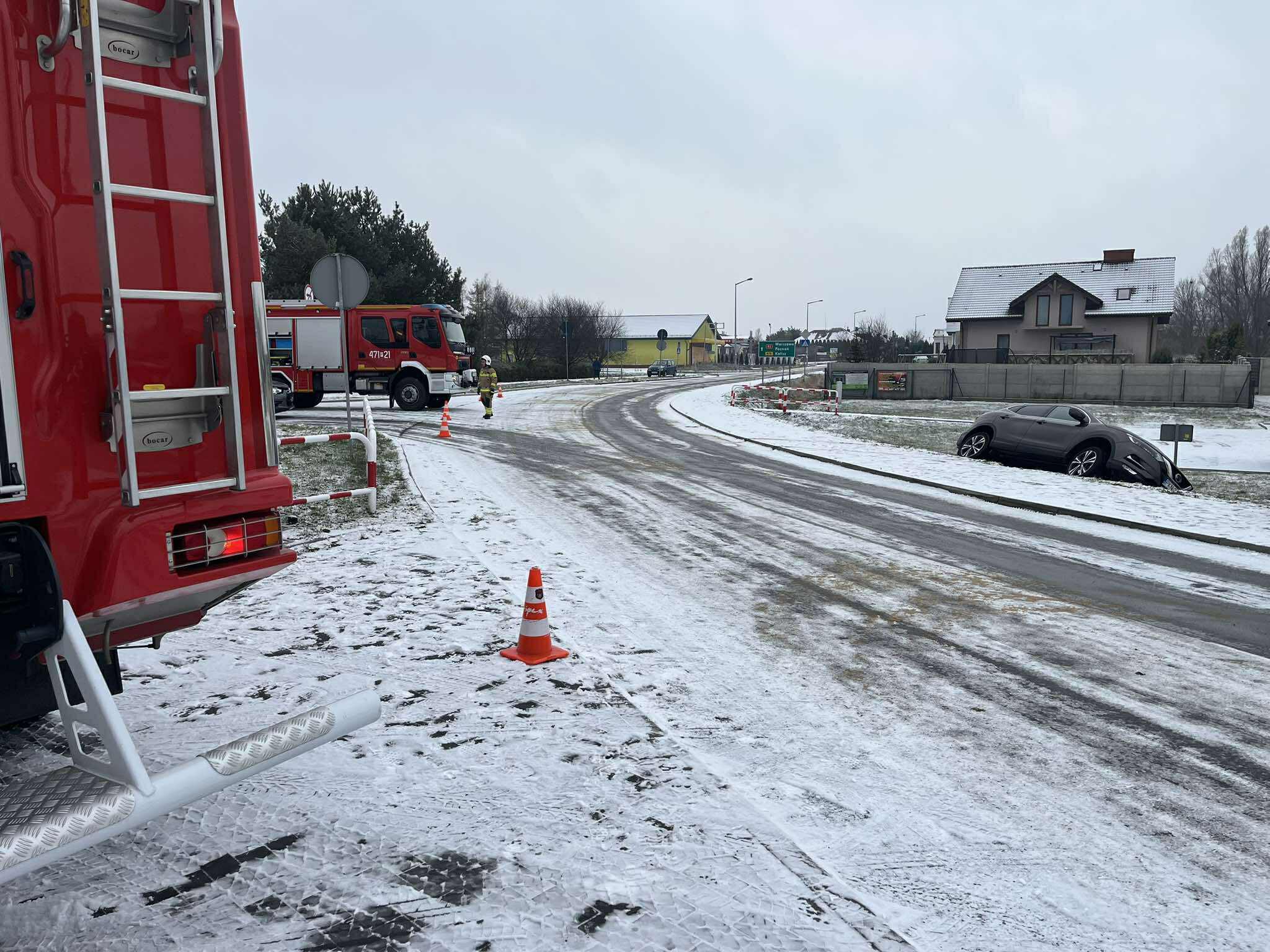 Powiatowe Stanowisko Kierowania Komendanta Powiatowego Państwowej Straży Pożarnej w Kole zadysponowało zastęp GBA VOLVO z OSP Trzęśniew do kolizji trzech samochodów osobowych. Podczas zdarzenia nie wystąpiły osoby poszkodowane.
