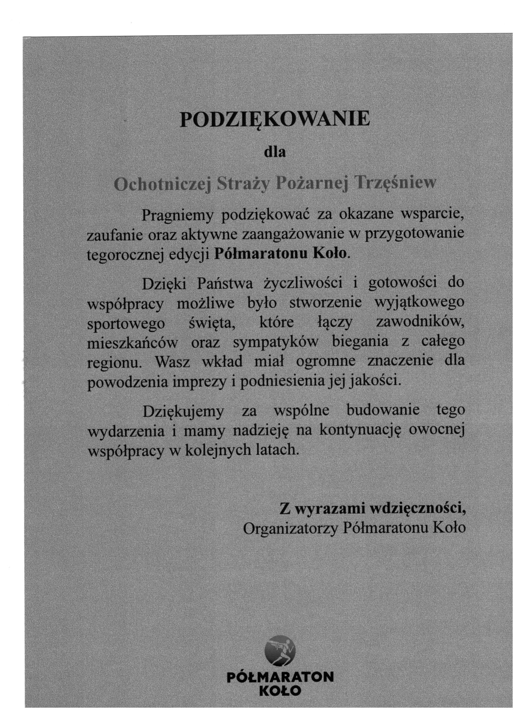 W ten sposób chcemy również podziękować za wspieranie naszej jednostki.