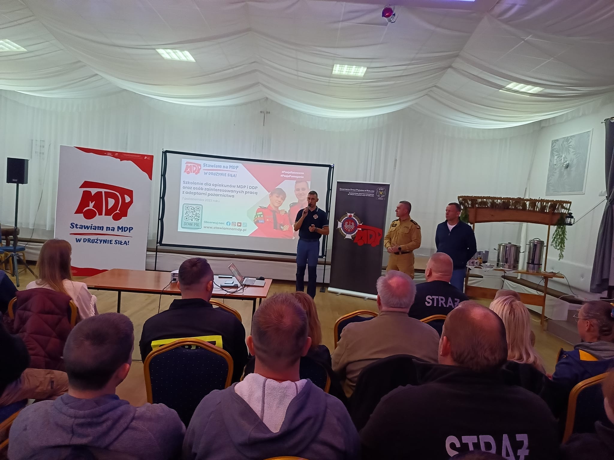 W dniu 07.10.2023r. druhowie Andżelika Okupna, Dominika Zduńczyk oraz Radosław Rossa brali udział w szkoleniu dla opiekunów Młodzieżowych i Dziecięcych Drużyn Pożarniczych, które odbyło się w jednostce OSP Krzymów. Szkolenie miało na celu wymienię doświadczenia, ale także pozyskaniu informacji dotyczącej organizacji MDP i DDP w Polsce i w Wielkopolsce. Na koniec szkolenia wszyscy uczestnicy otrzymali certyfikaty. Dzięki szkoleniu nasza jednostka będzie mogła jeszcze efektywniej organizować Młodzieżową Drużynę Pożarniczą. Projekt Stawiam na MDP prowadzony jest przez Ochotniczą Straż Pożarną w Kwilczu - OSP KSRG, a partnerem zadania jest KW PSP Poznań.