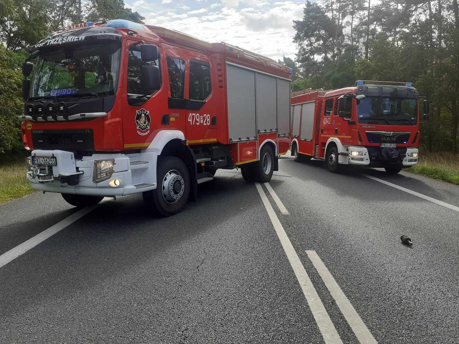 W dniu 09.08.2023r. przed godz. 9:00 Powiatowe Stanowisko Kierowania Komendanta Powiatowego Państwowej Straży Pożarnej w Kole zadysponowało zastęp GBA 3/24 VOLVO OSP Trzęśniew do wypadku drogowego na DK 92 z udziałem dwóch samochodów osobowych w miejscowości Dąbrowice Stare gm. Kościelec. W wyniku wypadku dwie osoby zostały przewieziona do szpitala.