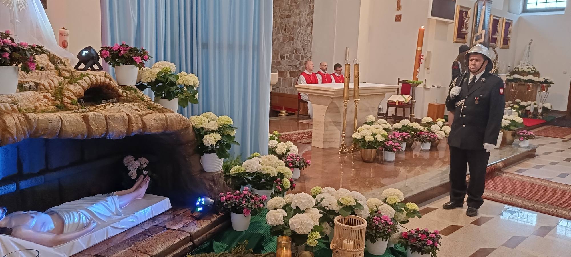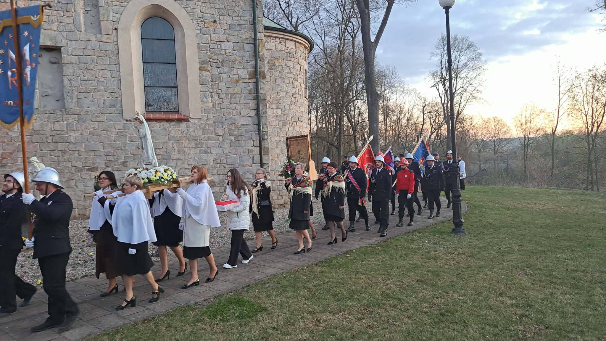 5 kwietnia 2026 r. o godzinie 6:00 druhny, druhowie oraz Poczet Sztandarowy OSP Trzęśniew uczestniczyli w uroczystej Mszy Rezurekcyjnej oraz procesji wielkanocnej w Parafii św. Andrzeja Apostoła w Kościelcu, wspólnie z druhami z Parafii Kościelec.